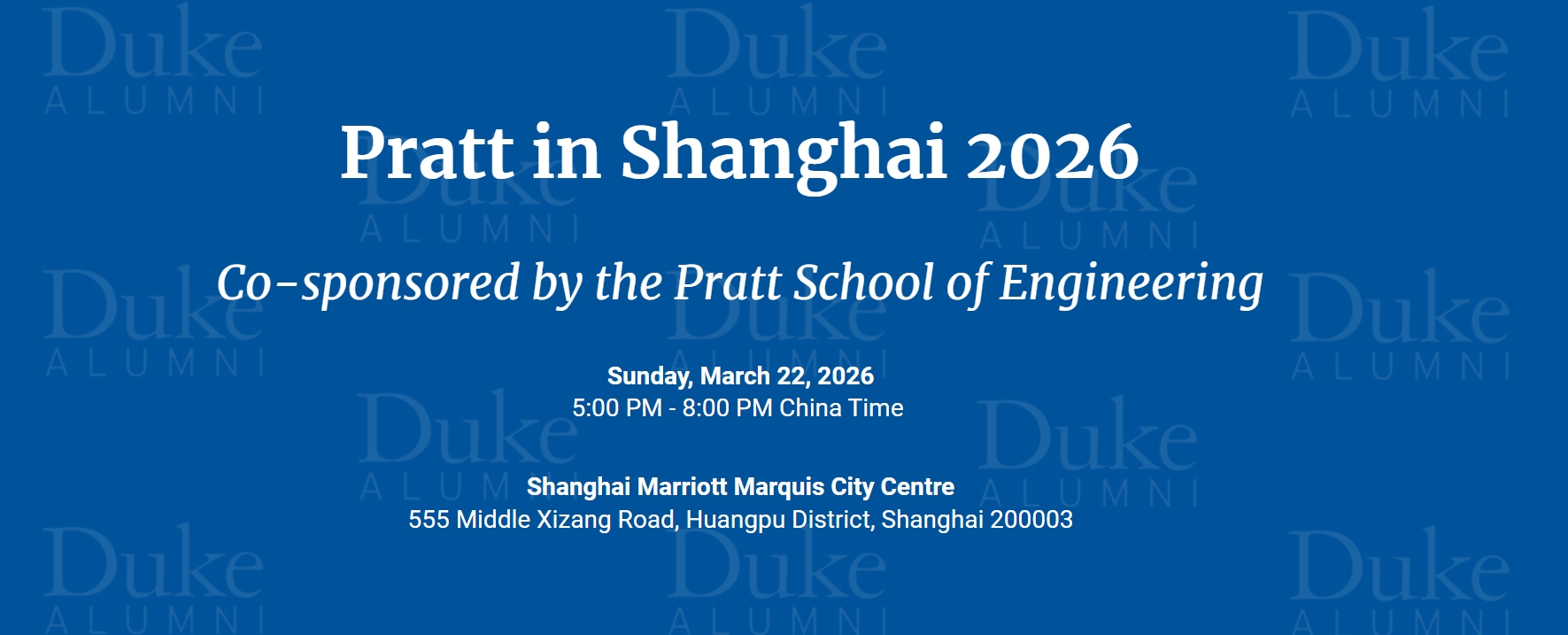 Reconnect, engage, and celebrate your Duke ties at this special alumni gathering in Shanghai!